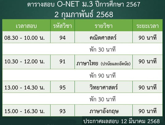 สอบ NT ป.3 วันที่ 25 กุมภาพันธ์ 2569